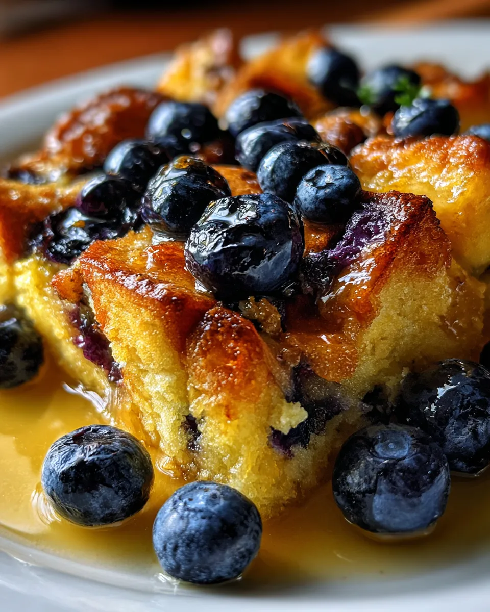 Wake up to a warm, comforting homemade blueberry French toast casserole with soft, custardy bread and juicy blueberries. Prepare it the night before for an easy, indulgent weekend breakfast.