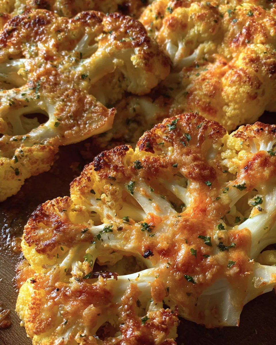 Enjoy rich cheesy cauliflower steaks that satisfy comfort food cravings while keeping meals healthy and delicious