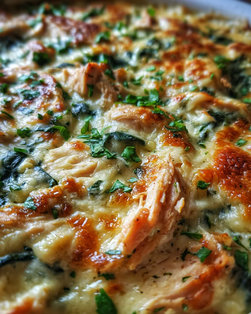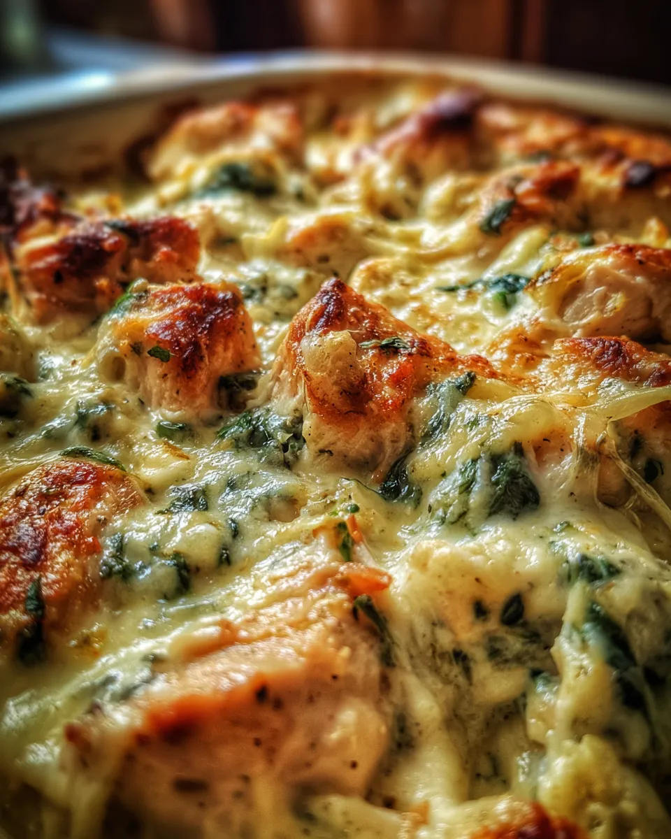 This casserole combines tender chicken pieces with fresh spinach in a luscious creamy sauce. It’s a hearty, fuss-free comfort dish with a perfectly golden top and melty cheesy finish, perfect for busy weeknights or family meals.