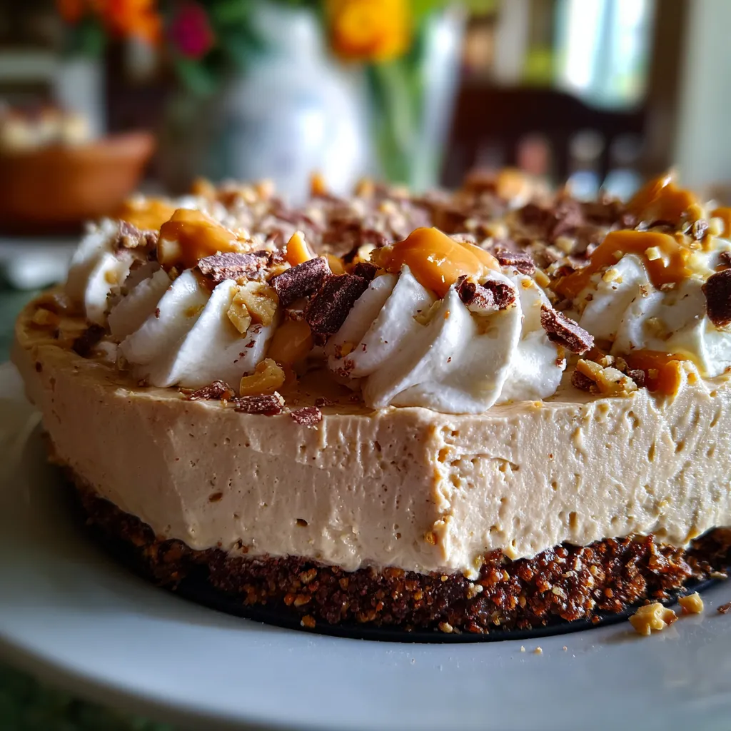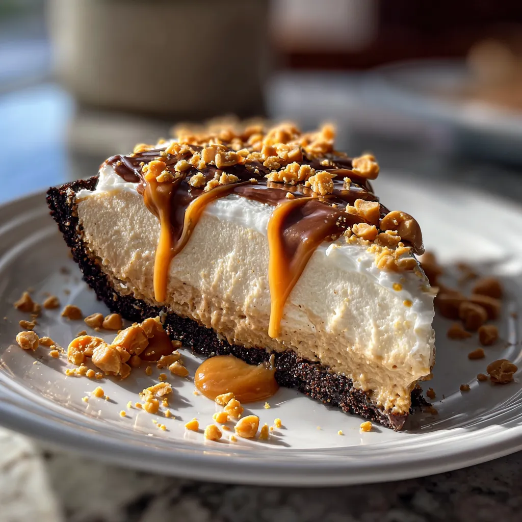This pie is rich and meant to be enjoyed in smaller portions, especially since it has dense fats and sugars from the peanut butter, cream cheese, and whipping cream. Balancing it with fresh fruit or a light salad can work well if you want something alongside.