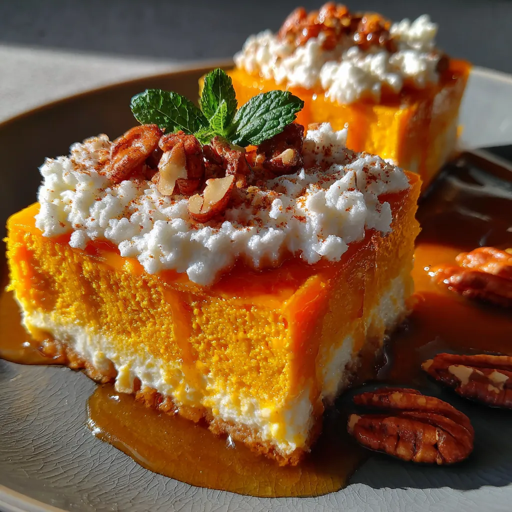 - Step 5: Assemble and Chill – Spread the pumpkin cream filling evenly over the chilled graham cracker crust. Cover the dish with plastic wrap and refrigerate for at least 4 hours, or overnight if you have time. This resting step helps it firm up so it slices nicely and the flavors mingle.