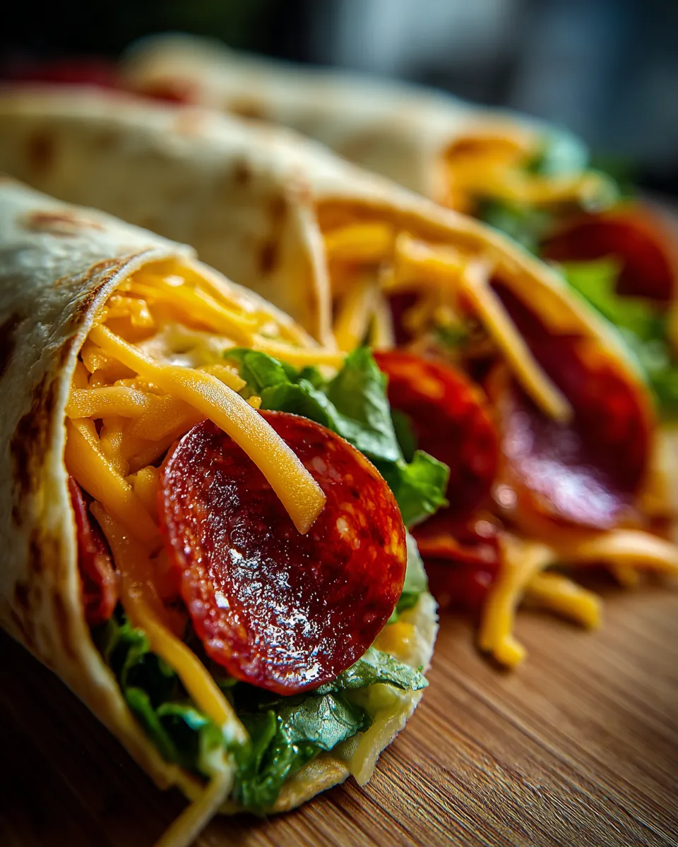 Satisfy your hunger with Pepperoni Pizza Caesar Wraps a bold twist on classic flavors that hits the spot every time