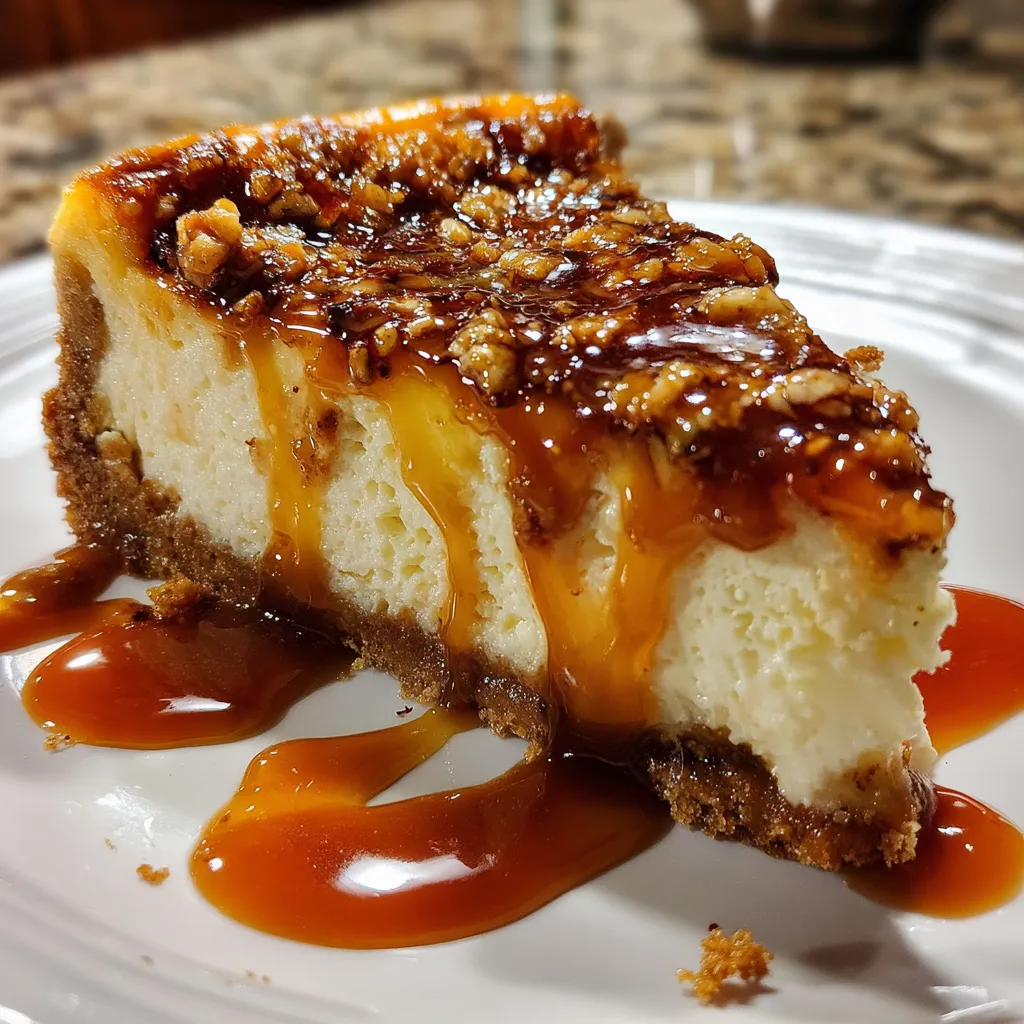 When reheating, avoid the microwave since it can change the cheesecake texture. Instead, let it come to room temperature naturally or enjoy it chilled. If you want the caramel warm, gently heat that in the microwave separately for a few seconds and drizzle just before serving.