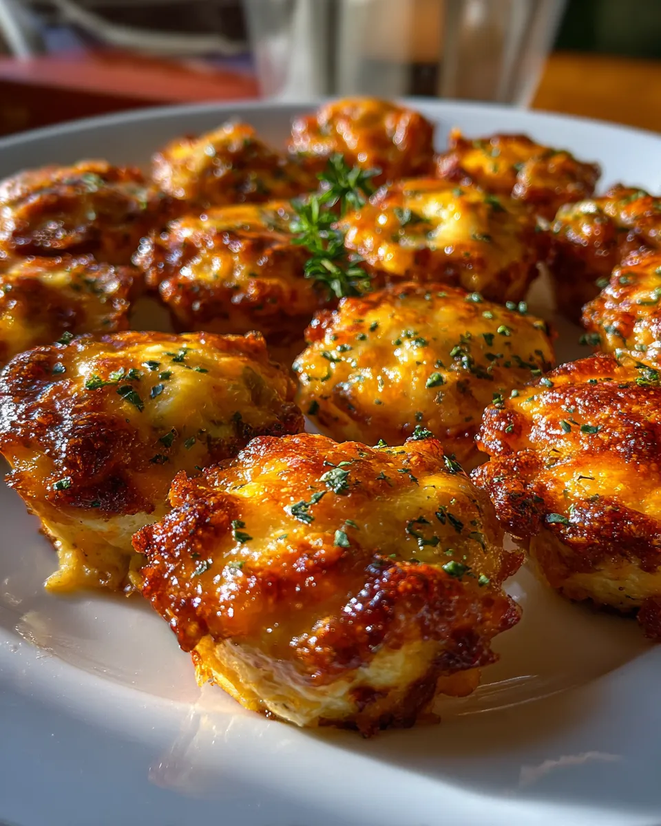 Savory Iowa Party Bites are a delicious, bold-flavored appetizer featuring sharp cheddar, breakfast sausage, and a blend of spices baked into tender yet crispy mini muffin bites. Perfect for cozy get-togethers and crowd-pleasing occasions.
