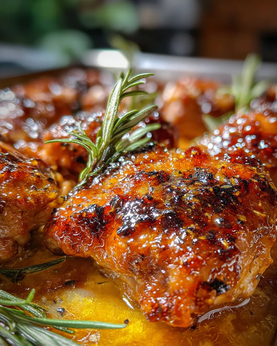 - Remove from the oven and let the chicken rest for 5 minutes. This helps the juices redistribute and the glaze to set slightly. Serve garnished with fresh thyme or rosemary for a pop of color and aroma.