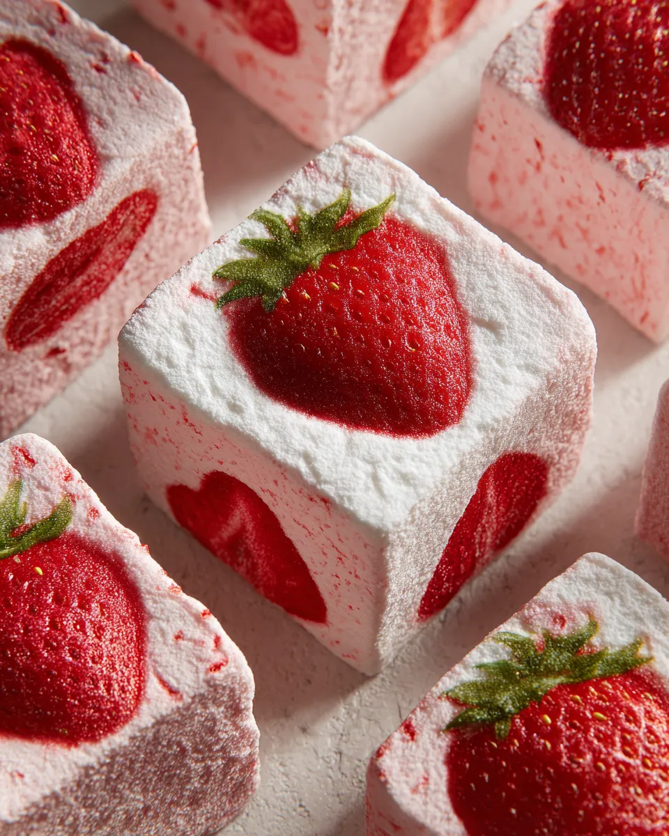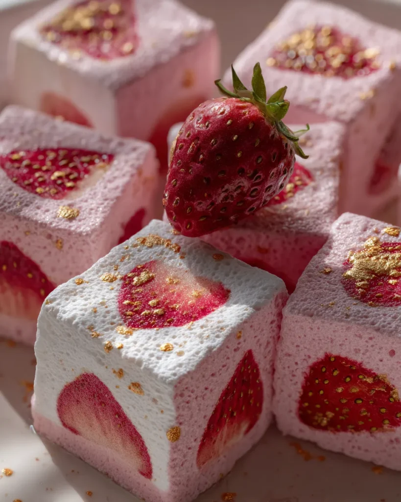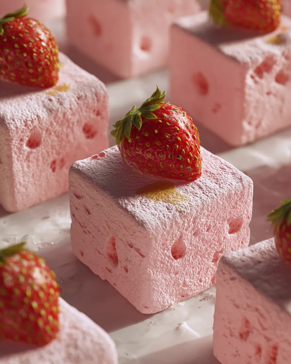 Soft, pillowy homemade strawberry marshmallows infused with fresh strawberry puree that bring a sweet summer garden flavor. Perfect for snacking, roasting, or drinks with a tender yet chewy texture and natural strawberry brightness.