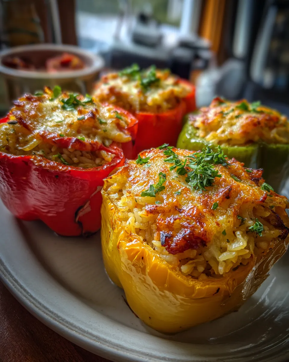 A wholesome and fuss-free recipe for stuffed bell peppers filled with a vibrant mixture of rice and fresh veggies, finished optionally with cheese and fresh herbs. Perfect for weeknight dinners that balance creamy, crunchy, and savory flavors.